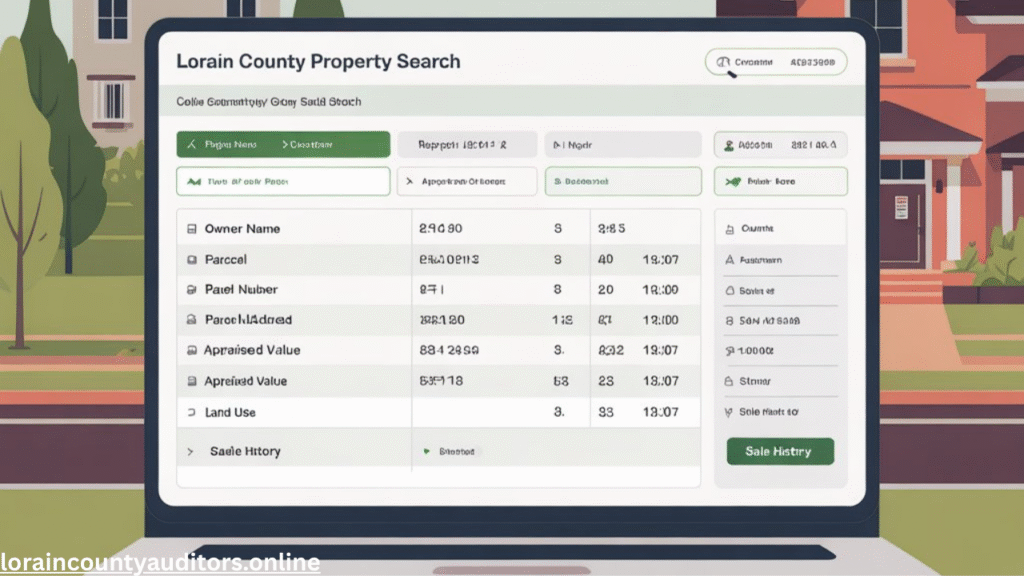 A property search usually provides owner details, parcel number, property address, assessed value, land use type, acreage, and past sale history.